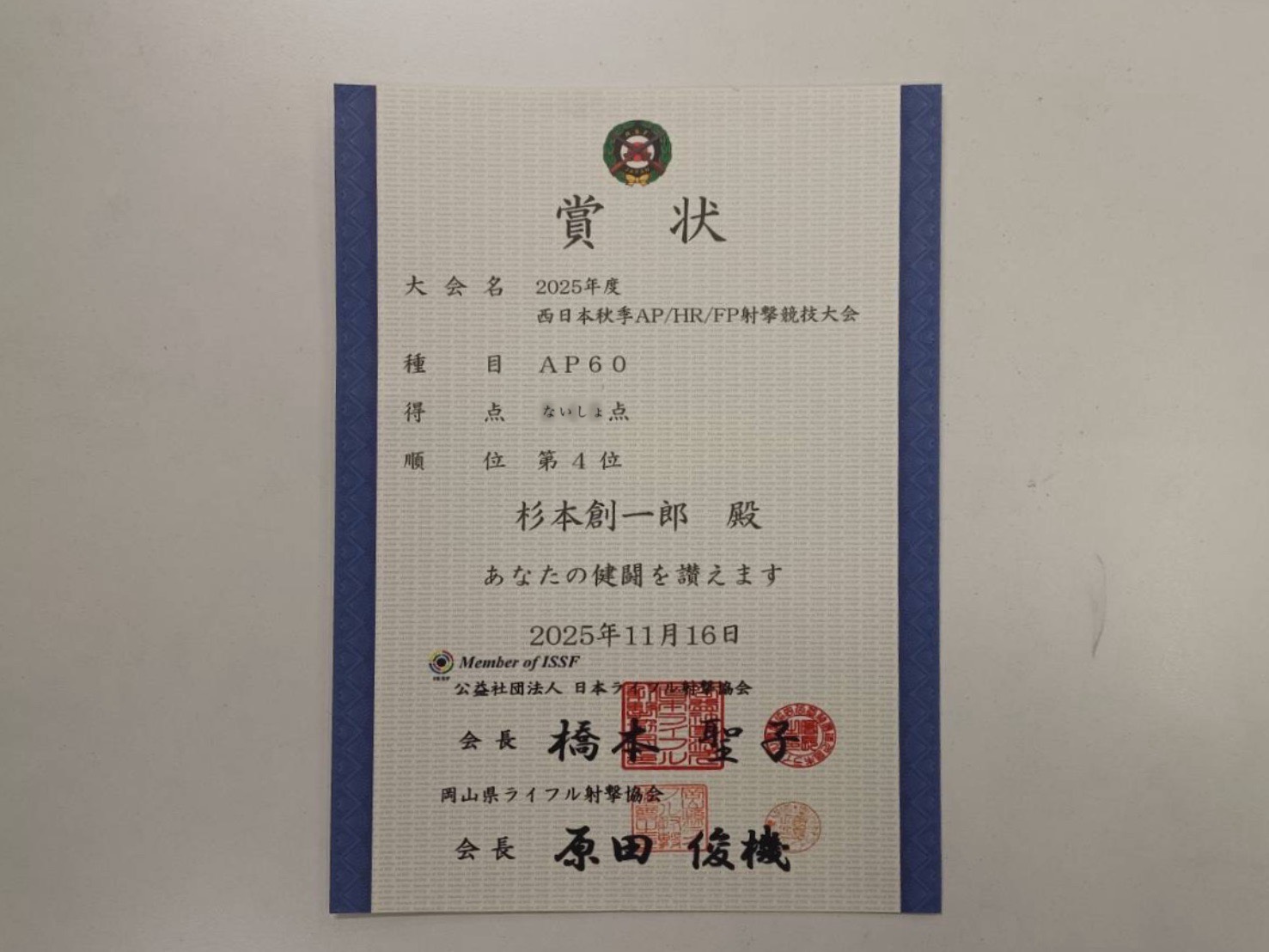 うちの社員がまたもやライフル射撃の大会で入賞してきました!!